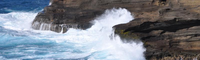 • Waves crashing into basaltic rocks formed from lava flows on Hawai'i Island. Courtesy of pxhere.com